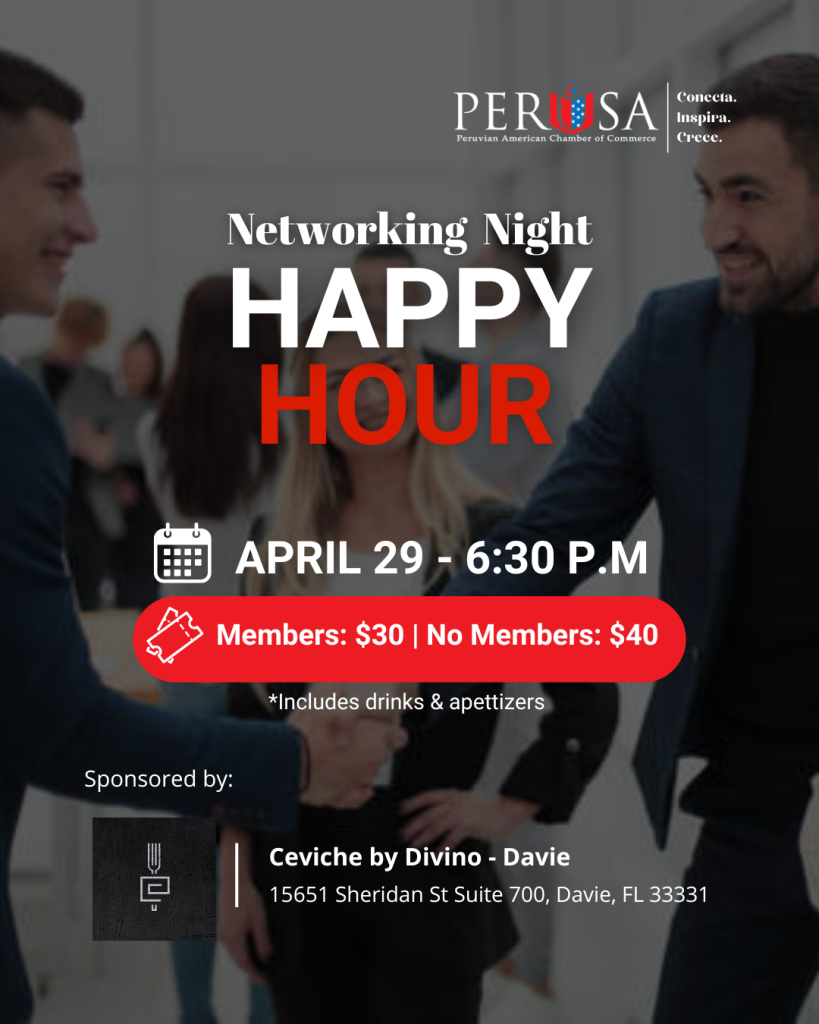 - Apoyar a los emprendedores y profesionales que residen en Estados Unidos, que estén inmigrando o consideren hacer negocios entre Perú y Estados Unidos.